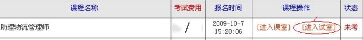 • 選擇要考試的課程點(diǎn)擊"進(jìn)入試室"按鈕, 進(jìn)入到試卷信息表