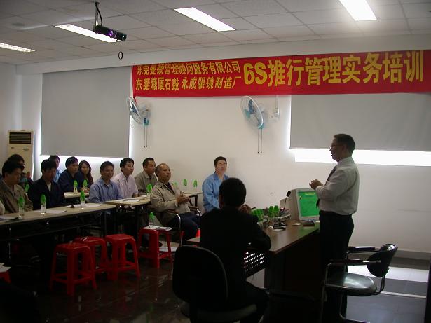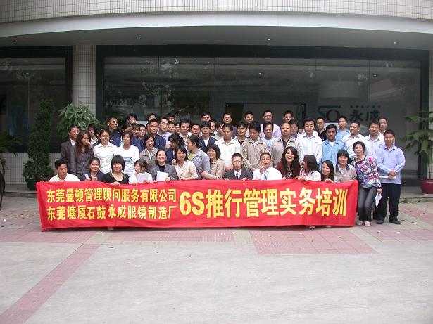 永成眼鏡廠規模大,技術高,采用新型設備,為眼鏡行業的矯矯者。在當前全球金融危機的大形勢下,永成眼鏡高層管理員感受到了管理培訓的重要性,故邀請東莞曼頓顧問公司進行了為期一天的6S管理培訓廠內培訓班!