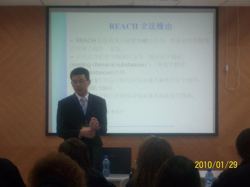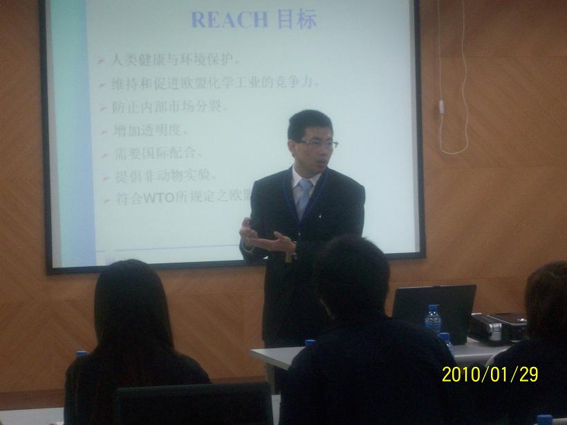 2010年1月29日,東莞曼頓顧問公司在客戶處舉辦了有關歐盟REACH規范要求的培訓課程。此次培訓由曼頓公司富有經驗的黃老師主講,授課內容包括REACH簡介、法規條文、實施計劃、法規摘要、注冊要求等方面。黃老師通俗易懂的講課技巧使得客戶反映能起到實際操作的好效果。以下為培訓現場留影: