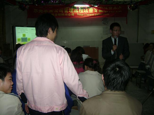 2010年1月30日,東莞曼頓顧問公司在客戶卓榮公司舉辦管理流程改善啟動大會?蛻糇繕s公司為曼頓顧問公司常年輔導服務對象,該公司位于東莞東坑鎮,專業生產塑料衣架,規模大、福利好,得到社會各界和政府部門的高度好評。曼頓顧問公司近年來調查發現,現今在珠三角很多企業雖已通過ISO認證,但ISO標準的管理要求并未能真正的落實下去,而管理效益的提高是一個需要長期持續改善的過程。為此,曼頓顧問公司根據客戶的實際情況,為企業量身定做,制訂了一套內容包括體系實施檢查、管理培訓以及現場整改指導等方面的管理改善方案,確保真正達到預期的效果。以下為管理培訓現場留影: