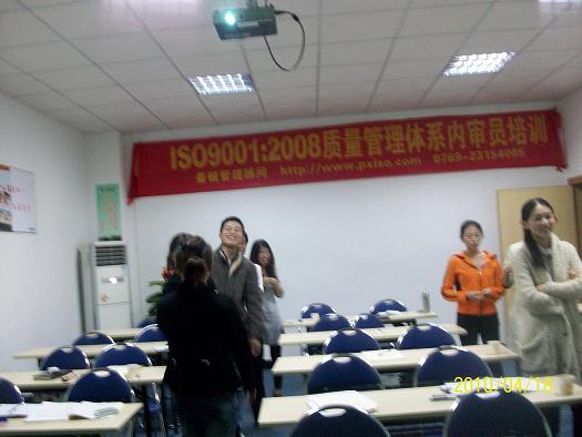 2010年17、18日,東莞曼頓顧問公司成功舉辦第70期ISO9001:2008內審員培訓班。曼頓公司為保證學員能有一個良好的學習環境,投資逾萬元對培訓室進行了整體升級,超強的隔音效果,把馬路上的噪聲拒于門外。此外,老師們在課間休息時舉行游戲活動,使得學員之間積極交流,成功分享學習經驗。以下是現場培訓留影: