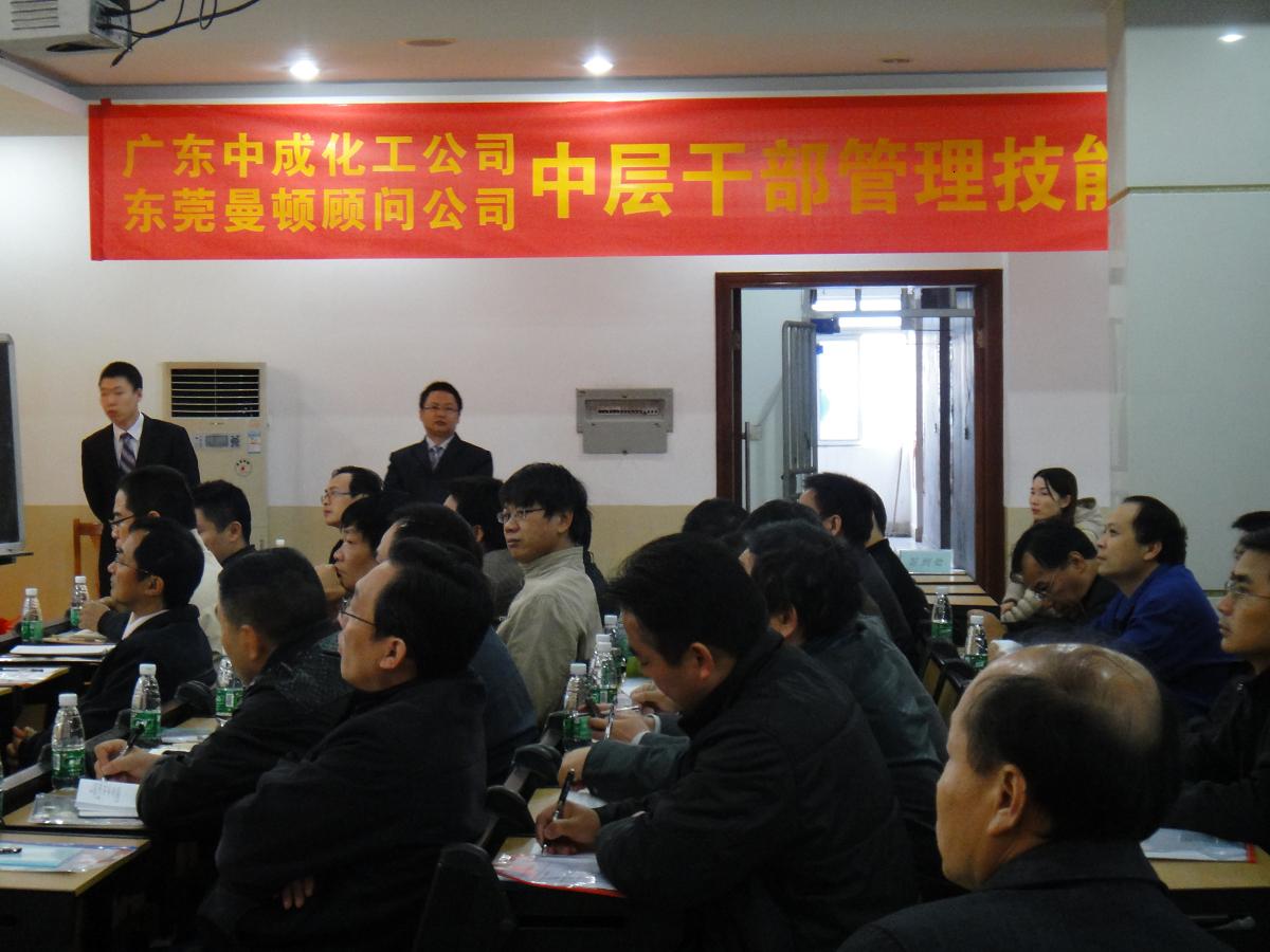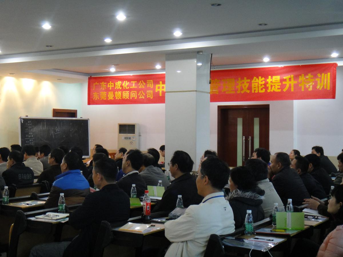 2012寒冬過后,將迎來2013年新的希望,各企業將日漸興旺發達。隨著生產運作加速,管理問題將顯得更為突出,為此,管理培訓這一練兵比以往顯得猶為重要!做為廣東省化工行業的龍頭企業之一,柳化集團中成化工非常重視企業管理培訓。為了更加規范內部管理,提升管理干部的綜合管理素質和能力,特舉辦此次管理訓練班培訓課程。以下是現場培訓留影,歡迎查看。更多的培訓相片和培訓信息,歡迎點擊http://user.qzone.qq.com/514484157/infocenter#!app=4&via=QZ.HashRefresh查看。